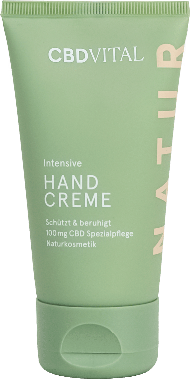 CBD Vital Handcreme gehört zur Bio-Kosmetik und wirkt entzündungshemmend und beruhigend. Sie besticht durch einen angenehmen Grüntee-Duft und vermittelt ein angenehmes Gefühl beim Auftragen. CBD Handcreme spendet dem Anwender Feuchtigkeit und regeneriert den natürlichen Hautschutz ohne zu fetten. CBD Vital Naturkosmetik Handcreme enthält Gamma-Linolensäure, Omega-6-Fettsäuren und Vitamin E. Dank dieser speziellen Zusammensetzung ist die Creme besonders gut verträglich.